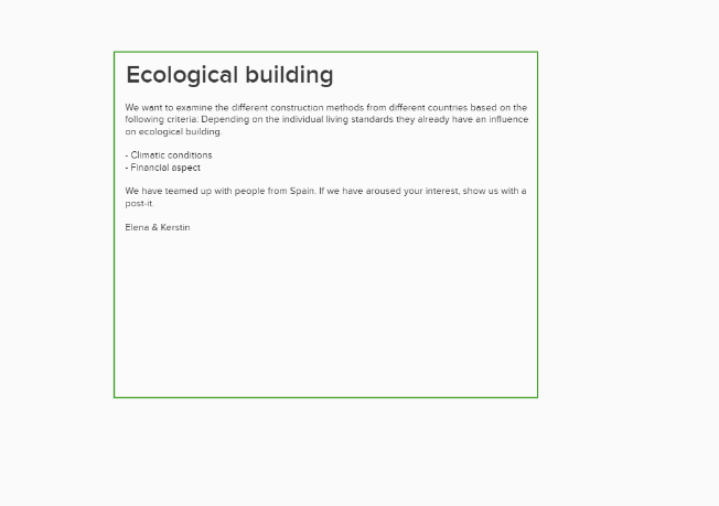 Task 4 - propagate your project on the Mural 13. January 2022 Kerstin-Zollinger Ecological building, VZ21 Zurich Wetzikon (0) Elena & Kerstin